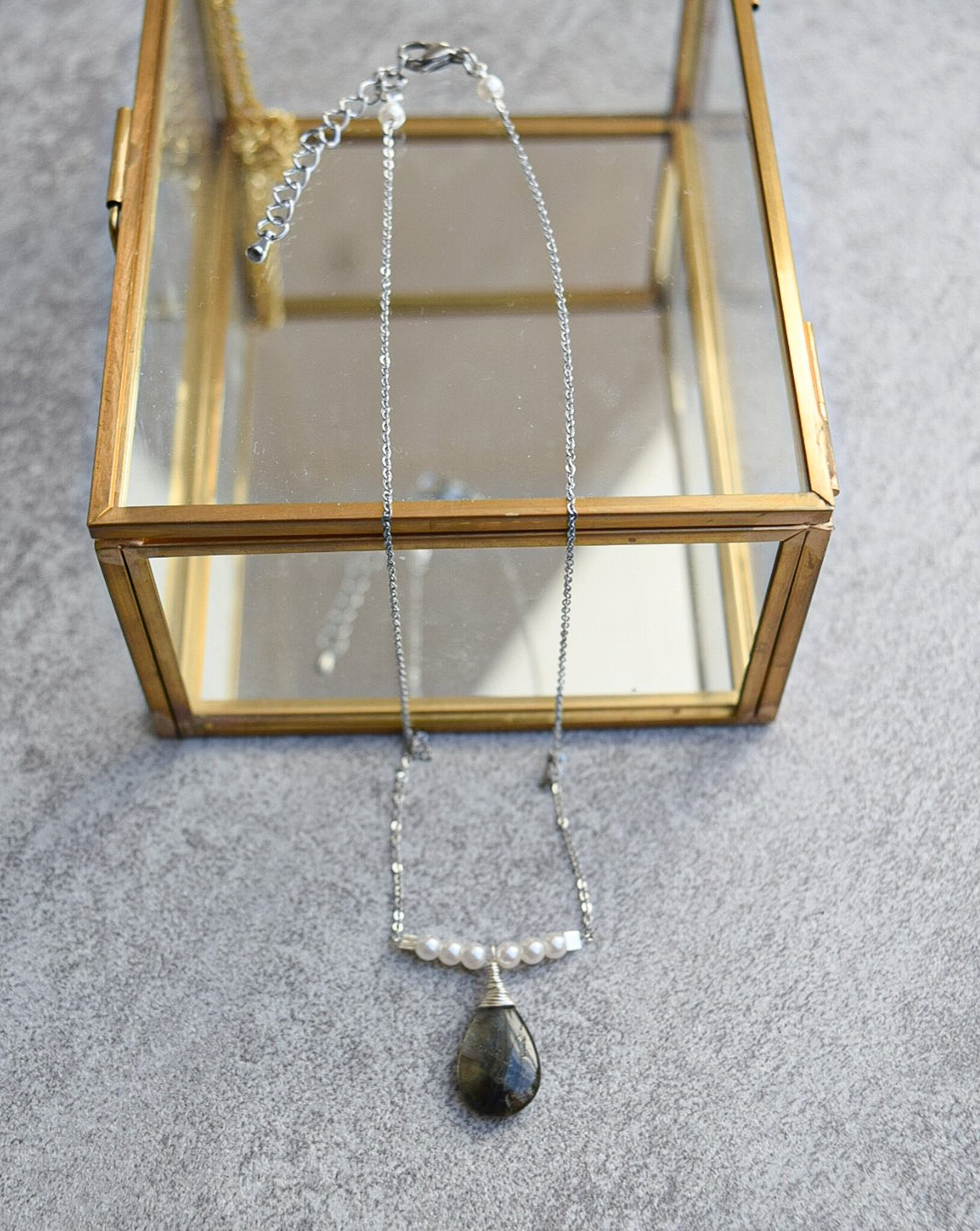 ラブラドライトの偏光が美しいティアドロップペンダント